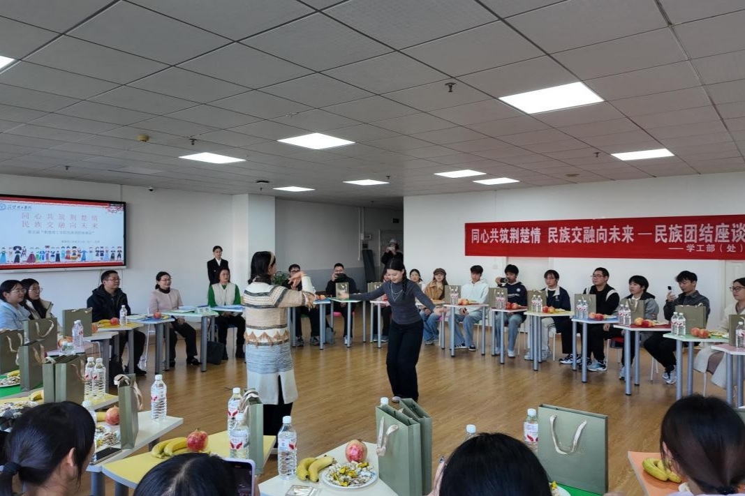 为深入学习贯彻习近平总书记关于加强和改进民族工作的重要思想,以二十届四中全会精神为指引,11月22日,我校以“同心共筑荆楚情 民族交融向未来”为主题,举办第五届少数民族学生代表座谈会暨民族团结教育活动。校党委副书记郑艳,统战部、学工部(处)相关教师与少数民族学生代表齐聚一堂,将全会精神学习融入交流实践,共话成长、共促融合。