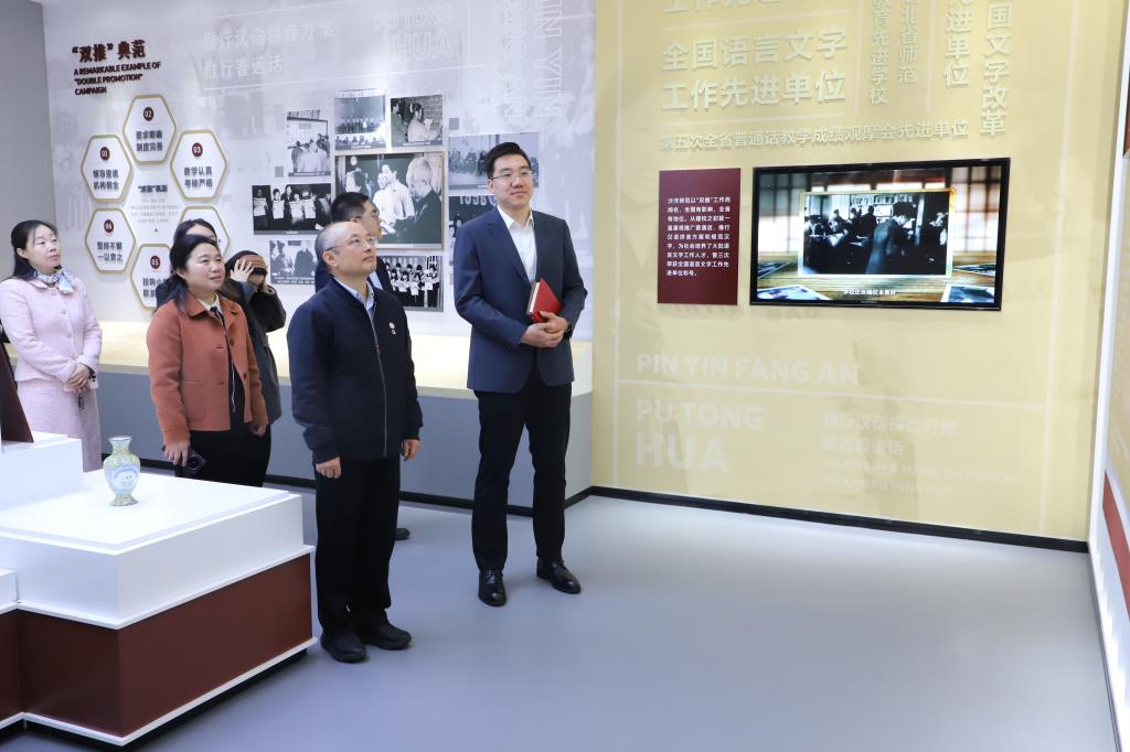 仪式前,陈鹏程一行参观了学校校史馆,通过现场讲解与实物展示,详细了解了学校的办学历史、办学成果与未来发展规划。