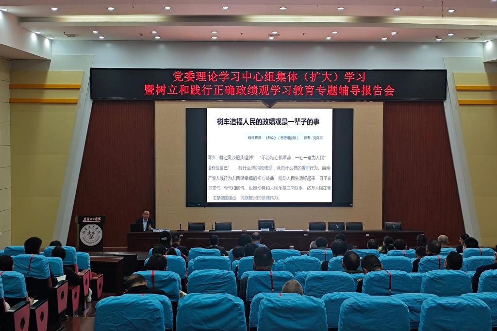 4月15日,我校在C201学术报告厅举办党委理论学习中心组集体(扩大)学习暨树立和践行正确政绩观学习教育专题辅导报告会,邀请荆门市委党校刘良军教授作专题辅导报告。校长张友兵主持并讲话,在校校领导参加学习。